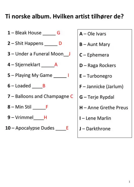 10 norske album - fasit