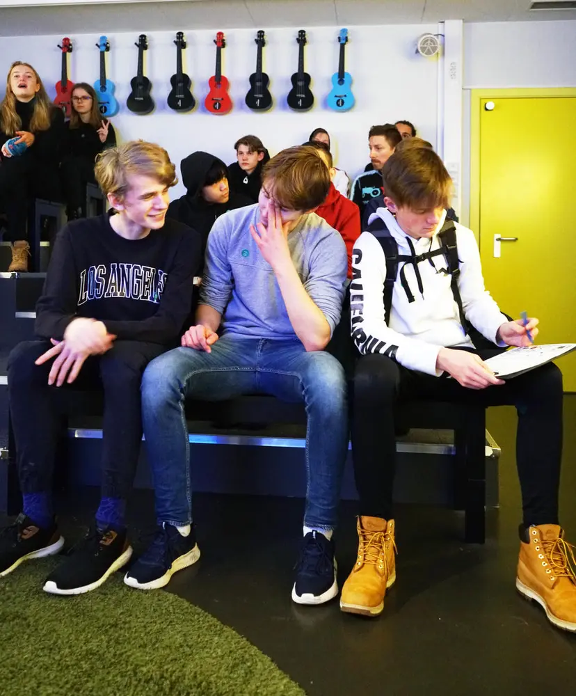 I Rockheims nye formidlingsrom Lydlab, har elevene jobbet med sin egen komposisjon og produksjon, og fått nærkontakt med hvordan en stor del av den moderne popmusikken skapes. Målet var å lage en låt som skal spilles av for de andre elevene.