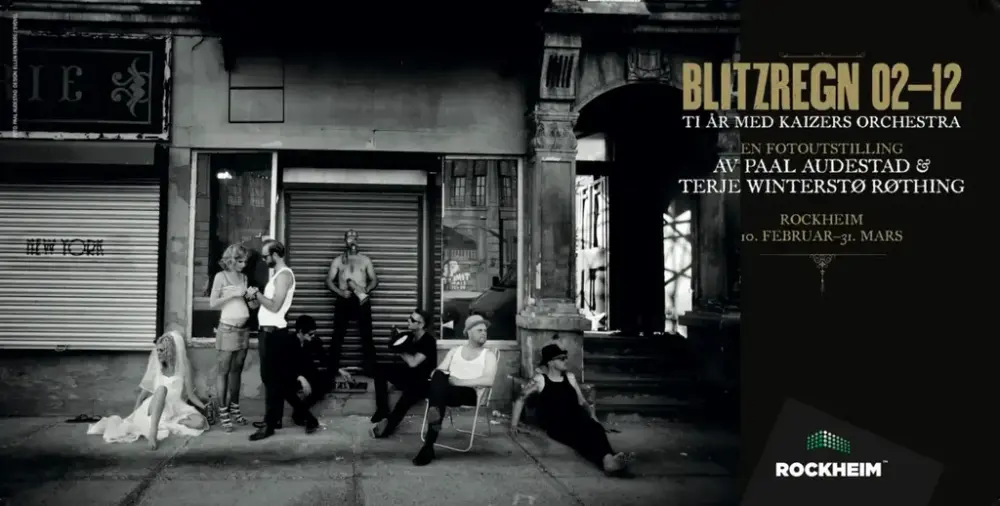 Utstillinga inneheld forrykande fotografi av Kaizers på scenen, det ekstatiske publikumet deira, samt sveitte og utsletne kroppar etter konsert. Bileta til gitarist Winterstø Røthing tar oss enda eit hakk nærare dei seks keisarane. Frisering, reising, bading, venting, hardt arbeid, kameratskap og humor er dokumentert – gjennom både oppturar og nedturar frå turnélivet. Blitzregn 02 – 12 inneheld også mange av Audestads velkjente og stemningsfulle promoteringsbilete av bandet.