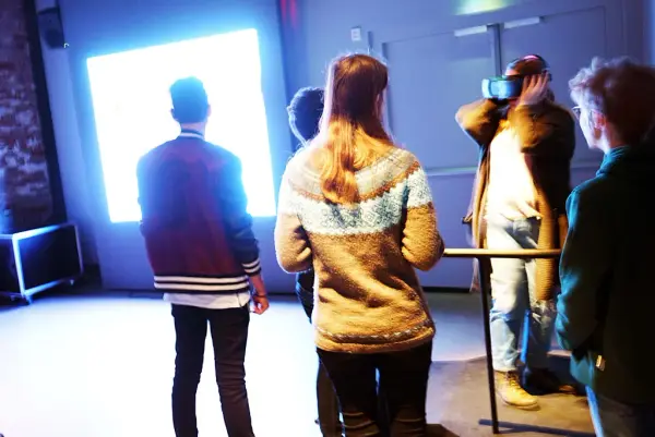 Elevene har selvsagt også besøkt utstillingen Dans me mæ, som en del av det 1,5 timer lange undervisningsopplegget på Rockheim. VR-briller som tar deg rett ut på dansegulvet, var nok det mest populære.