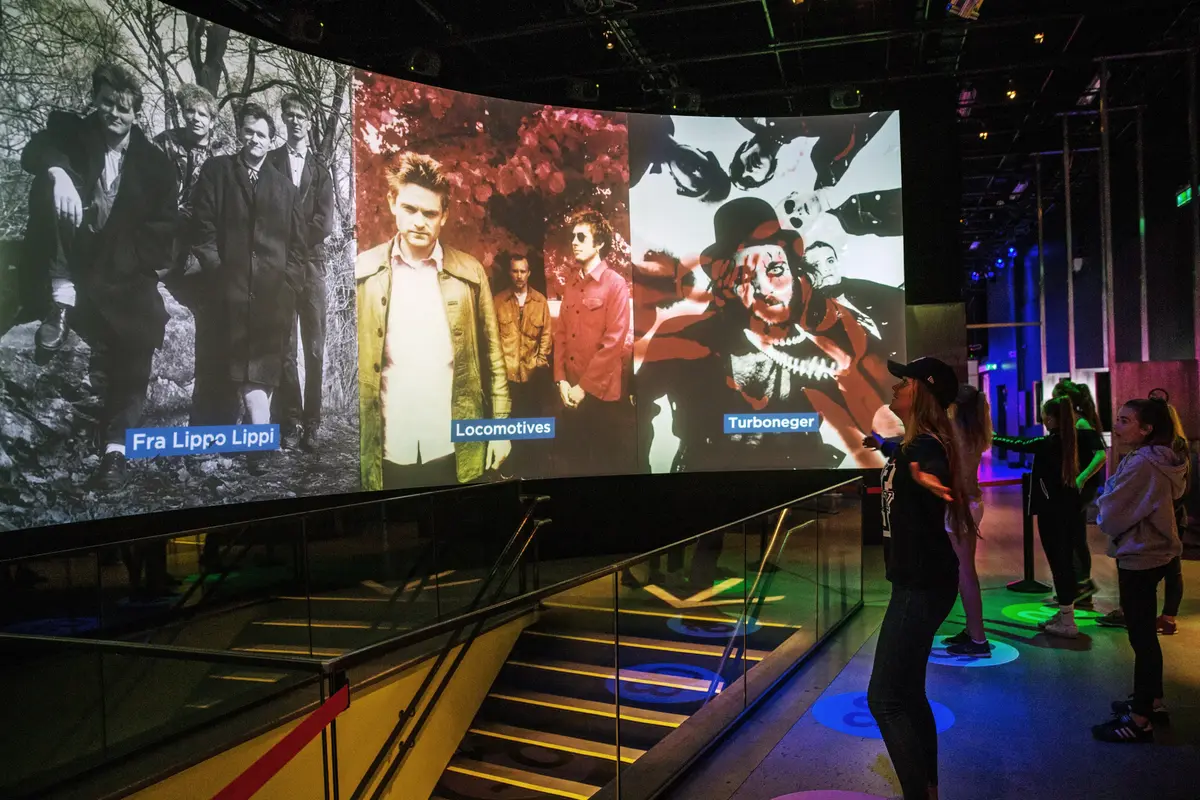 Rockheims faste hovedutstilling er utformet som en reise gjennom nyere norsk musikk og kulturhistorie. Under en omvisning vil dere få en innføring i populærmusikkens utvikling i Norge fra 1950-tallet og helt til dagens mangfoldige musikkuttrykk. Vi løfter fram musikk, rockens verktøy og artister i lys av de ulike tiårenes kulturhistorie.