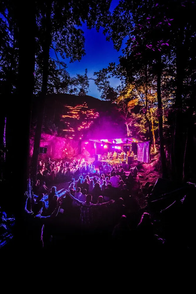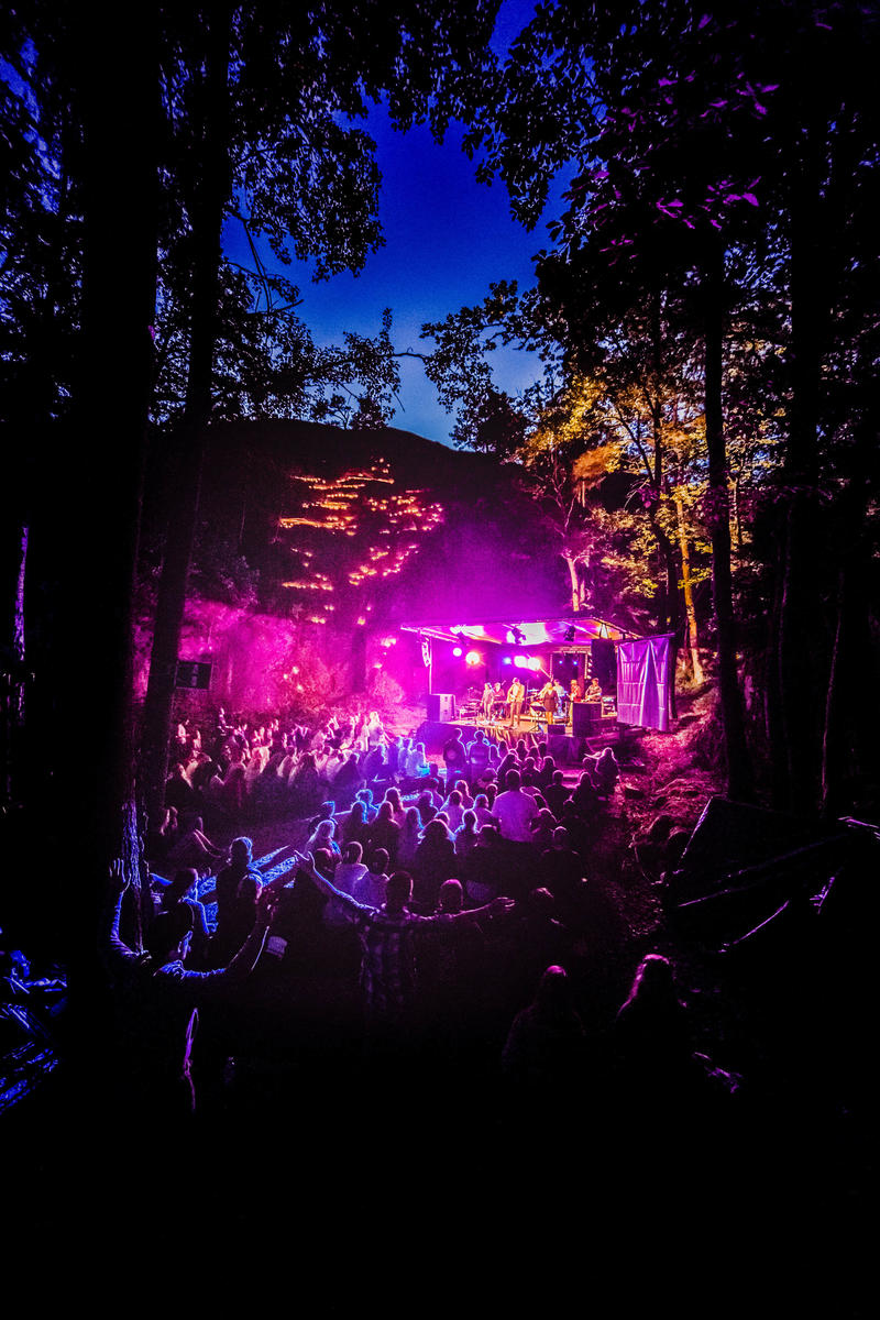 På festivalområdet er det et eget friluftskapell, ”Fjellkapellet”, hvor man ved hjelp av lyssetting blant annet holder stemningsfulle gudstjenester etter mørkets frembrudd. Foto: Haakon Sundbø - 2/4