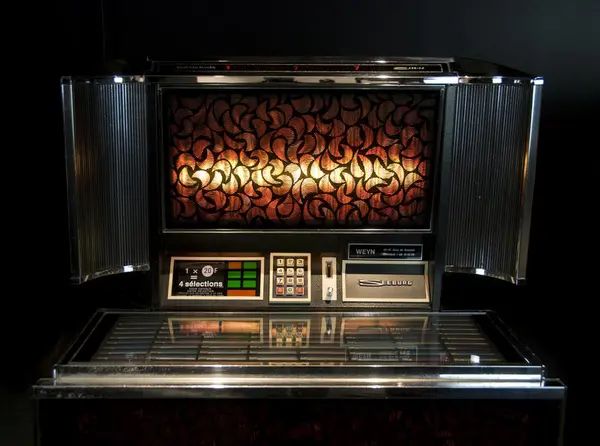Symbolverdi. Jukeboksen er mer enn en musikkmaskin: Den er et stemningsskapende møbel med symbolverdi. På tross av at avspillingsmediene har blitt mindre og mindre i fysisk størrelse, produseres det fortsatt store jukebokser. Et godt eksempel på dette er den klassiske jukeboksen fra 1947, Wurlitzer 1015, produsert for å spille 78-plater. I 1987 ble det laget en ny versjon av denne kalt Wurlitzer One More Time, med samme utseende men for cd-format. I 2010 ble det lansert enda en ny versjon av denne for Ipod. Mange forbinder Ipoden med hodetelefoner og private lytteopplevelser. Ved å sette en Ipod inn i en jukeboks forsvinner Ipodens private karakter.