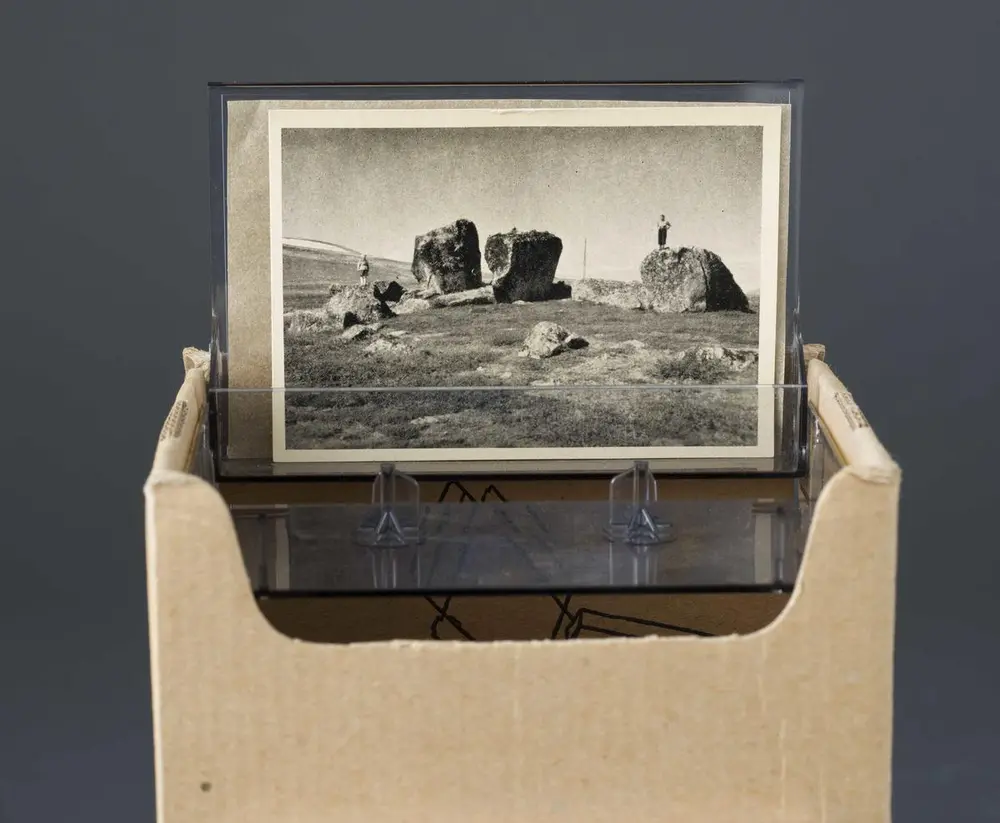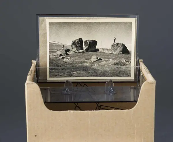På framsida av pappeska er det limt på ein liten konvolutt som inneheld 22 ulike innstikk. Desse innstikka er små kort med turist/landskapsfoto i svart/kvitt som Sten fann på ein brukthandel i Fjordgata i Trondheim.