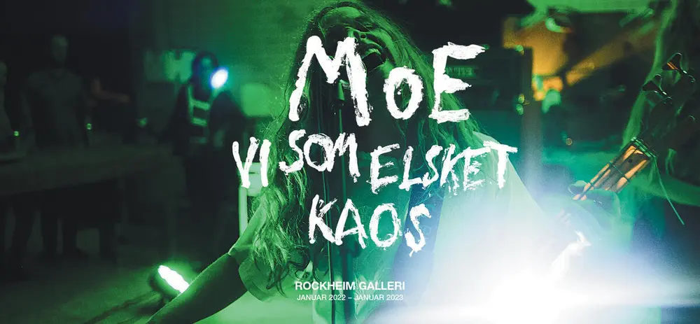 MoE–Nosotros que amábamos el caos es una exposición que retrata una forma alternativa de trabajar y comunicarse a través de la música. Es una red de trabajo basada en la idea del "hazlo tú mismo", un método con raíces históricas en las etapas de la escena musical underground, donde una estructura de poder plana, el diálogo artístico y la colaboración son pre-requisitos vitales para la música. La exposición cuenta la historia de las redes más allá de las fronteras nacionales, de los viajes, la comida, los encuentros con la gente, la dedicación y la voluntad de hacer las cosas por cuenta propia. Un estilo de vida y una profesión que se han enfrentado a importantes desafíos desde el brote de la pandemia por coronavirus en 2020. La exposición es una colaboración entre el MoE, Rockheim y el artista múltiple Lasse Marhaug. Marhaug ha sido uno de los artistas sonoros más importantes de Noruega desde la década de 1990 y ha sido responsable de la identidad visual de MoE en un sinfín de lanzamientos discográficos.