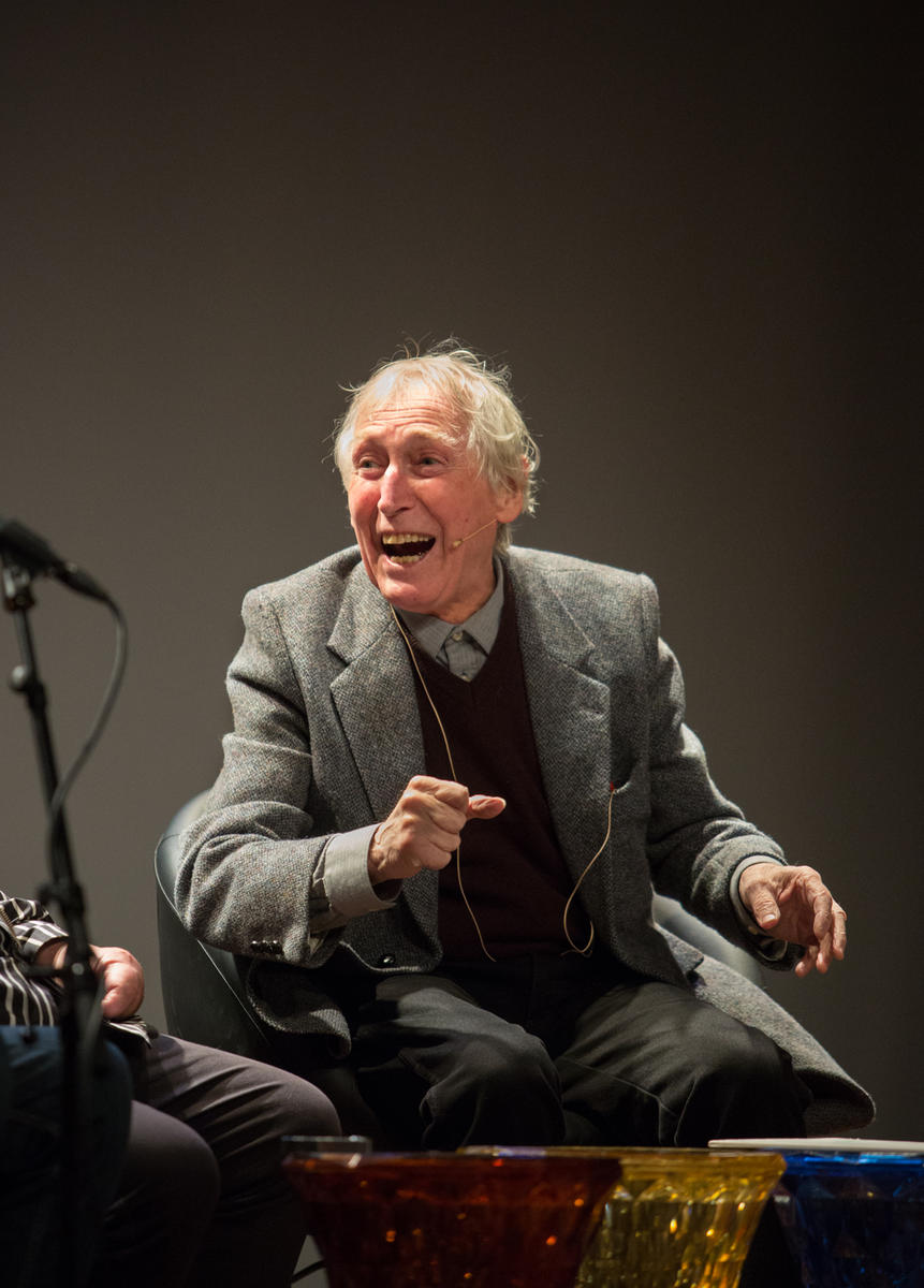 Alf Cranner på Rockheim scene i oktober 2017, i forbindelse med utstillingen Ei vise er så mangt. Foto: Elise Maalø.