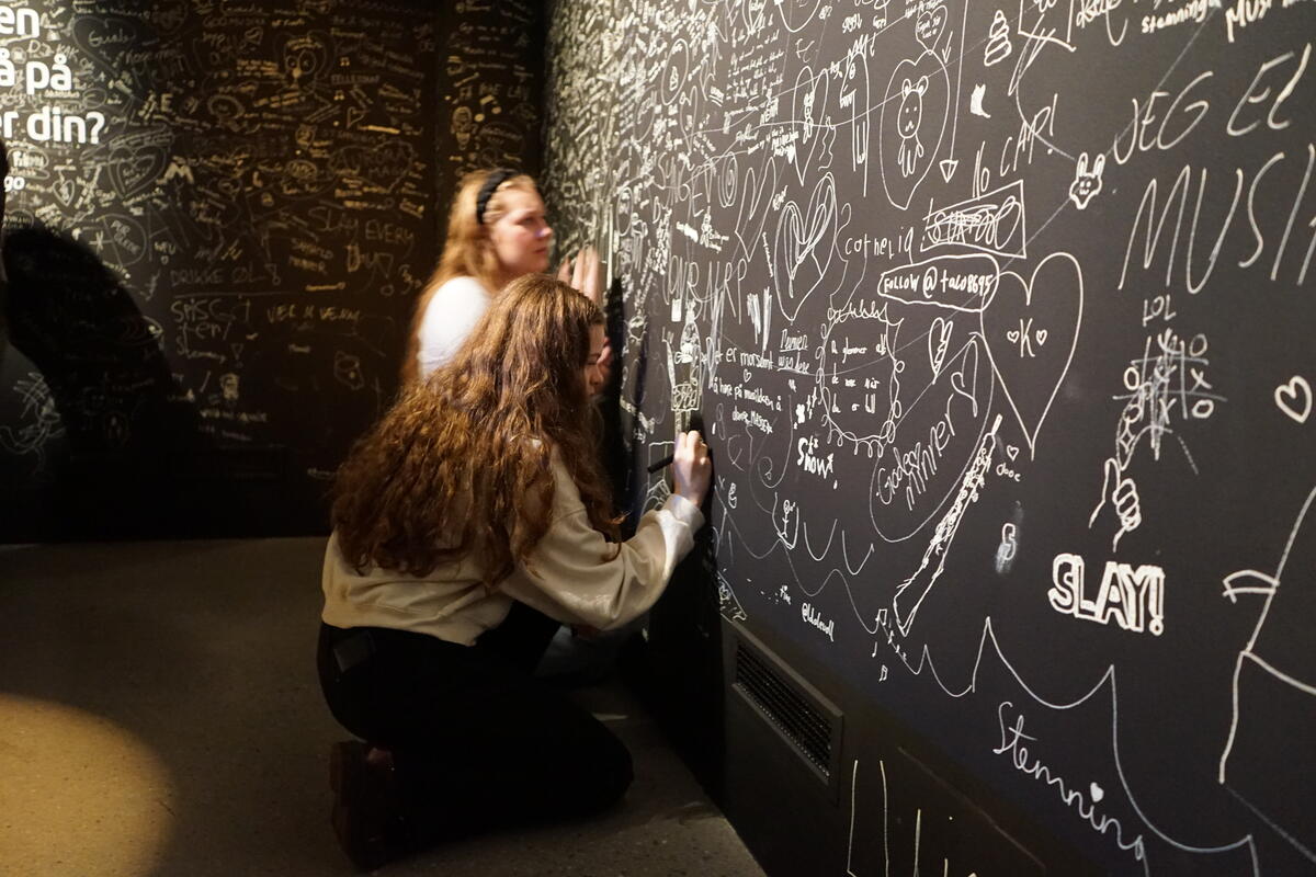 Ungdommer fra Blussuvoll ungdomsskole i utstillingen Mitt stille land. Det finnes tusen grunner til å gå på konsert. Hva var deres grunn? Hva gjør en musikkopplevelse sterkere når man er sammen?
