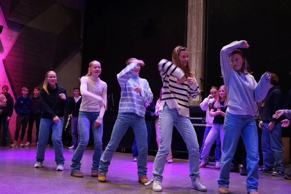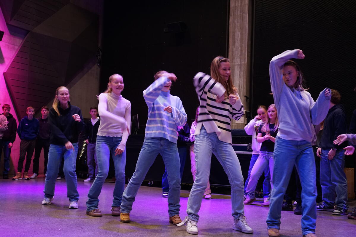 Elever fra Blussuvold ungdomsskole lagde selv dansebevegelser og satte sammen til en dansesekvens.