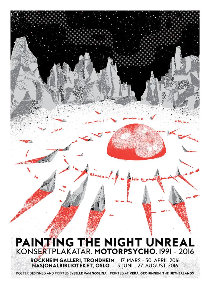 Silketrykk og offset, foto og psykedeliske illustrasjonar, letraset og integrert og nærast uleseleg typografi. Mangfald er eit dekkande stikkord i møte med både musikken og plakatane til Motorpsycho.