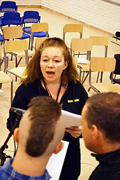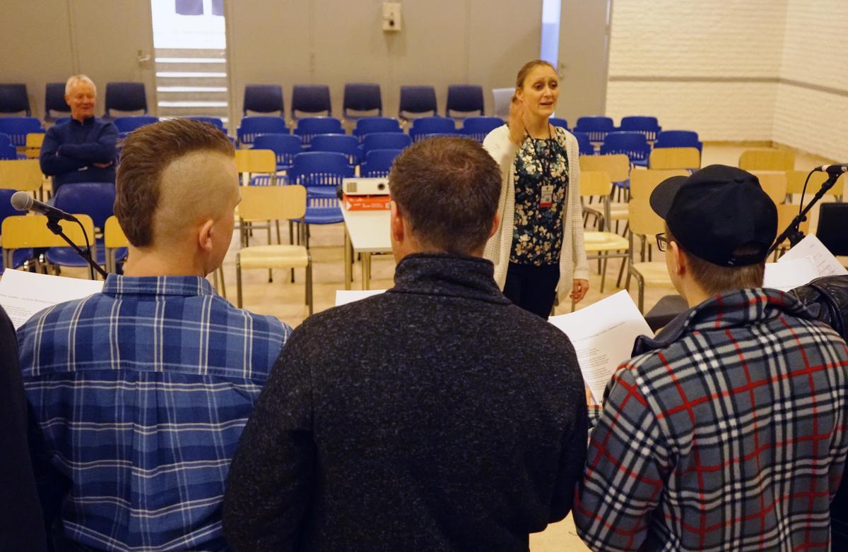 Instruerer: Anne Fossen, prosjektleder ved Rockheim, terper på korsang med de innsatte.