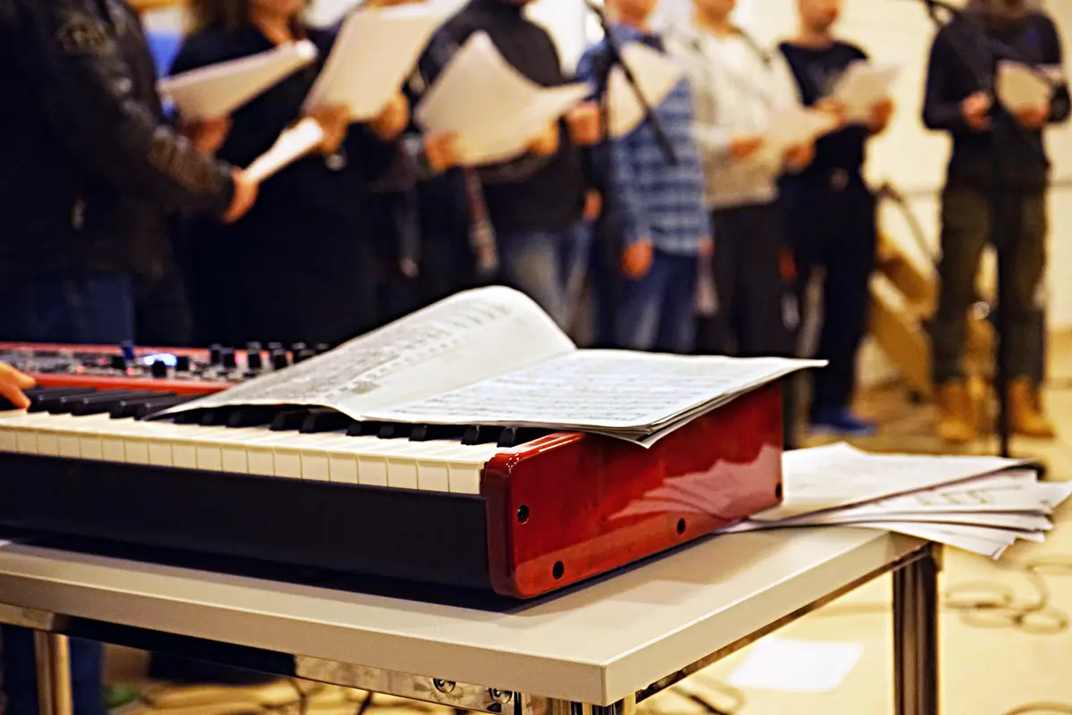 Siste finpuss av strupene før konsert for ca. 60 andre innsatte i Trondheim fengsel.