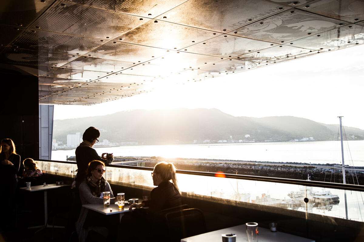 Restaurant Rockheim Panorama ligger i 5. etasje, og har fantastisk utsikt mot Trondheimsfjorden og byen, stor utendørsterasse og en meny tilberedt med omsorg og kreativitet.