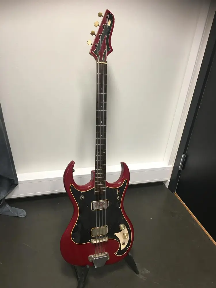 Eirik Wangberg, bassist i The Cool Cats, reiste i 1959 til Uddevalla i Sverige for å studere hvordan en elektrisk bassgitar var konstruert. Det var der den nærmeste musikkforhandleren med slike instrumenter til salgs befant seg på den tida. Wangberg tok mål og gransket bassen nøye før han dro hjem igjen og bygde sin egen. Henki Kolstads garasje ble instrumentverksted siden sønnen, Morten Kolstad, var bandkollega av Wangberg. Et par vinkorker og en volumkontroll fra en Radionette-radio er blant delene som bassen er bygget av.