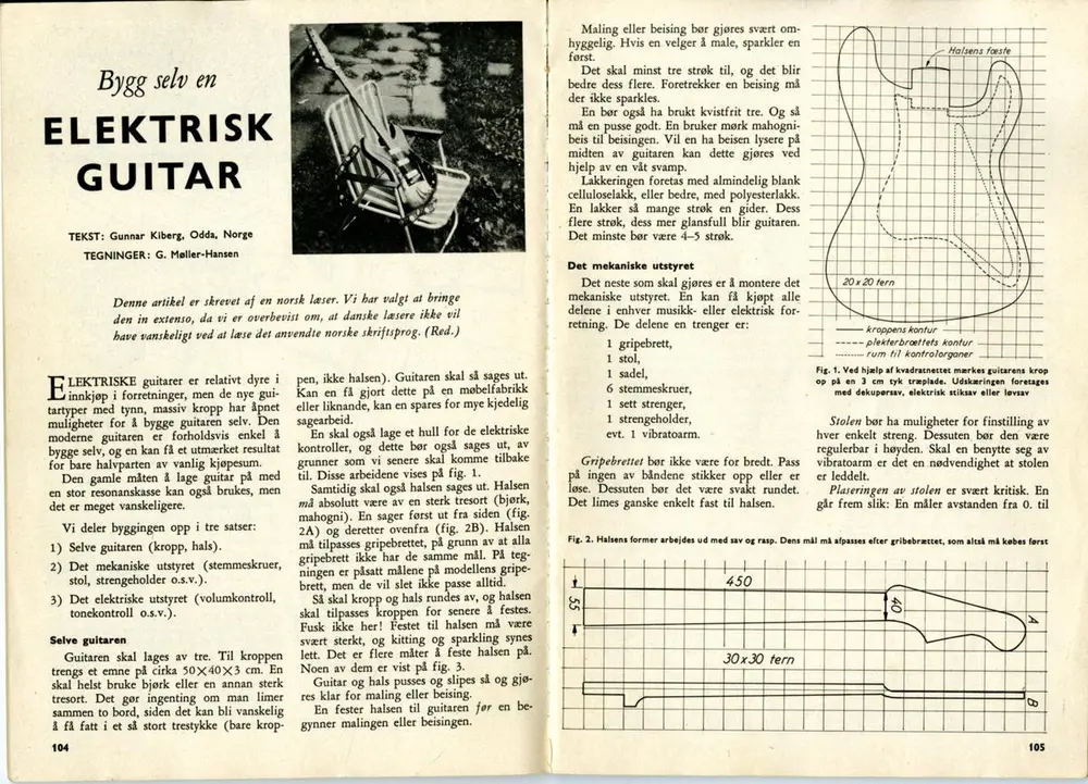 Gunnar Kiberg, blant annet kjent fra Naboens Rockeband i Trondheim, lagde en oppskrift på hvordan man kunne lage sin egen elgitar. Han fikk denne på trykk i det danske tidskriftet Populær Mekanik i 1965: