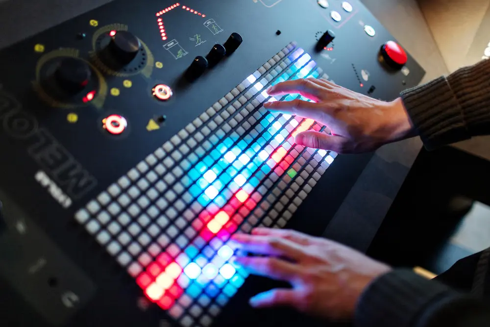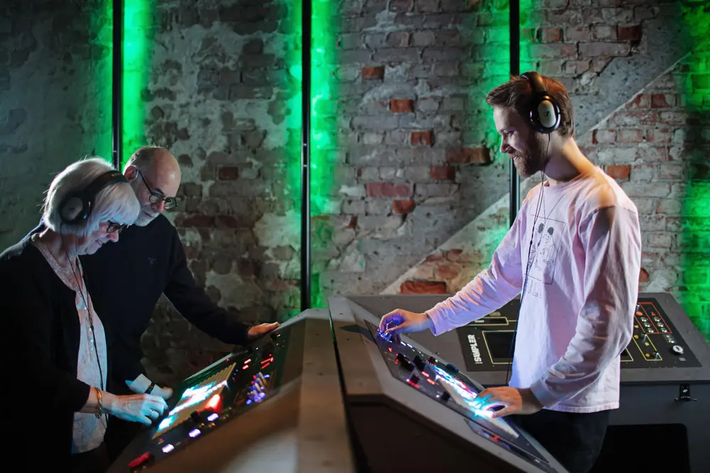 I et nesten skjermløst rom i vår fjerde etasje har vi laget «verdens største midikontroller» for å la deg produsere elektronisk musikk på en intuitiv og leken måte.